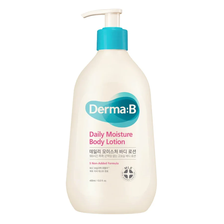 DERMA:B’s Daily Moisture Body Lotion is a beloved Korean formula designed to provide all-day moisturization without heaviness. Powered by MLE (Multi-Lamellar Emulsion) technology, enriched with skin-conditioning oils like shea butter, grape seed oil, and olive oil, and fortified with panthenol and calming hinoki cypress water, it absorbs effortlessly, soothing and hydrating dry, sensitive skin while protecting and revitalizing the moisture barrier
