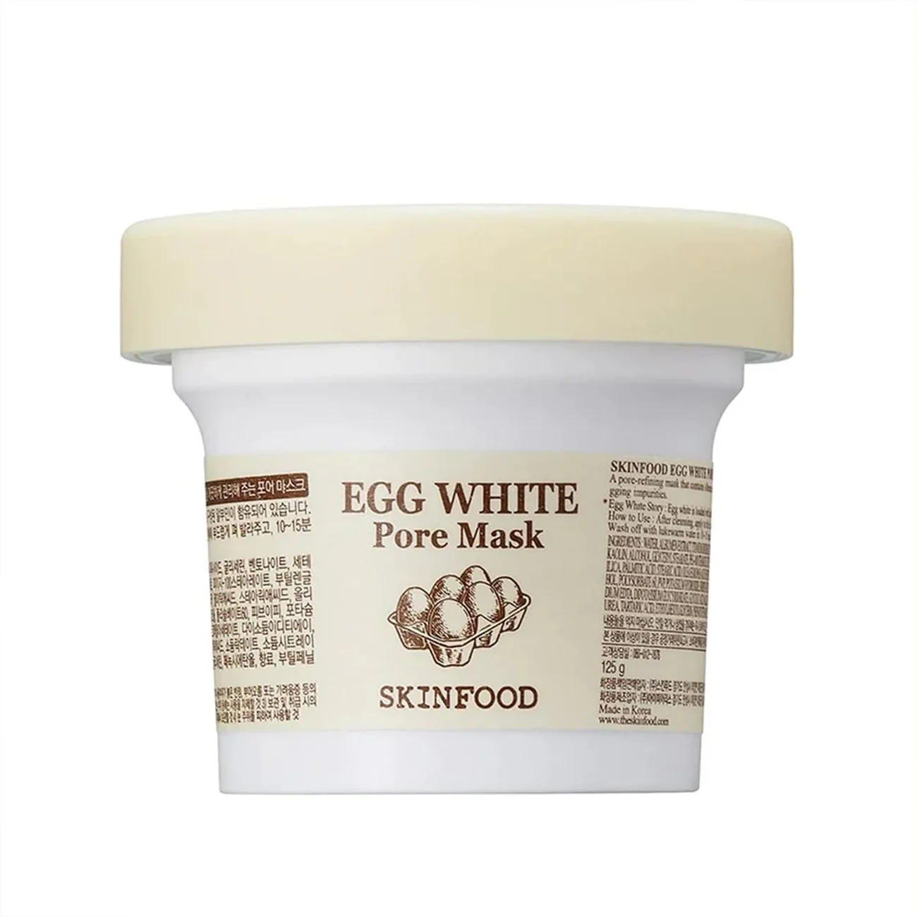 Water, Albumen Extract (6250mg), Titanium Oxide, Glycerin, Bentonite, Cetearyl Alcohol, Kaolin, Ethanol, Glyceryl Stearate, PEG-100 Stearate, Butylene Glycol, Caprylic/Capric Triglyceride, Silica, Palmitic Acid, Stearic Acid, Olive Oil, Polyvinyl Alcohol, Glyceryl Stearate SE, Polysorbate 60, PVP, Potassium Hydroxide, Sorbitan Stearate, Panthenol, Tocopheryl Acetate, Disodium EDTA, Dipotassium Glycyrrhizate, Glycolic Acid, Malic Acid, Sodium Lactate, Sodium Citrate, Sucrose, Urea, Tartaric Acid, Ethylhexylglycerin, Phenoxyethanol, Fragrance